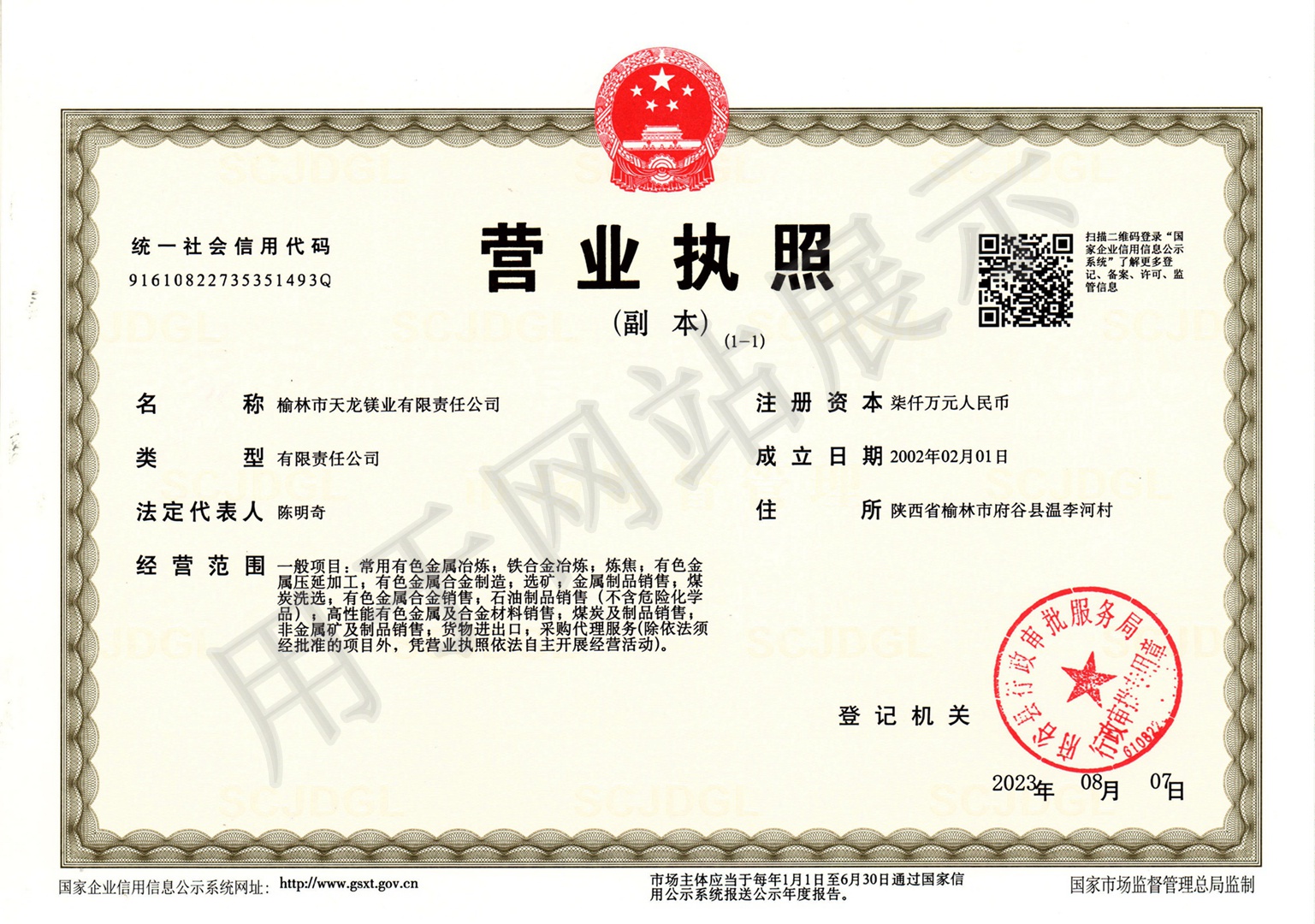 榆林市天龍鎂業(yè)有限責(zé)任公司(簡(jiǎn)稱(chēng)天龍公司)成立于2000年,是一家集金屬鎂、硅鐵、蘭炭生產(chǎn)銷(xiāo)售為一體,府谷最早從事金屬鎂生產(chǎn)的民營(yíng)企業(yè),公司位于國(guó)家能源重化工基地神府煤田開(kāi)發(fā)區(qū)腹地的陜西省榆林市府谷縣黃河工業(yè)區(qū),占地200畝,現(xiàn)已建成年產(chǎn)4.25萬(wàn)噸金屬鎂,配套年產(chǎn)50萬(wàn)噸蘭炭、2.5萬(wàn)噸硅鐵的循環(huán)利用產(chǎn)業(yè)鏈。公司總資產(chǎn)6億元,年可實(shí)現(xiàn)總產(chǎn)值12億元。